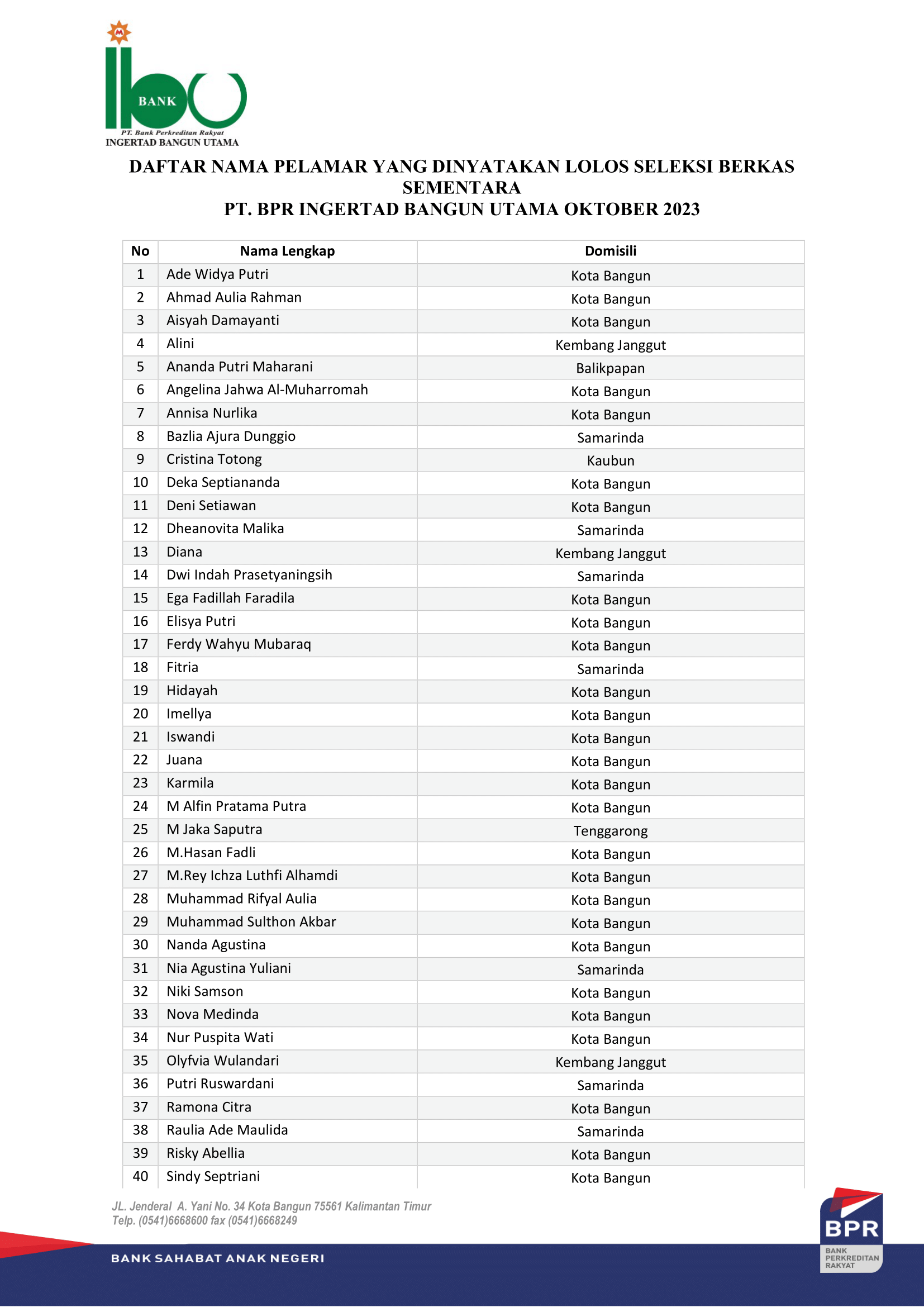 PENGUMUMAN PESERTA LOWONGAN BANK IBU OKTOBER 2023 YANG DI NYATAKAN LOLOS SELEKSI BERKAS (SEMENTARA)